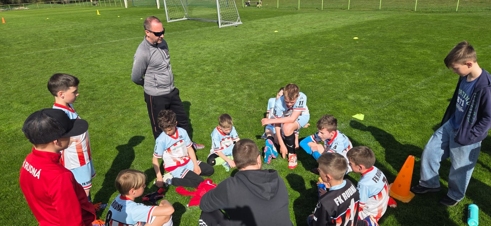 Na závěr bych chtě poprosit všechny rodiče, a nebo i chlapce samotné, aby v teplotách nad 15 stupňů nedávali dětem termoprádlo. Někteří experti dnes chtěli hrát v termoprádle, mikině, teplácích a v dresu samotným. Rovněž není vhodné, aby celé dopoledne byli v kopačkách a chráničích. Správný rudenský fotbalista si vezme batoh, do něho si dá kopačky, chrániče, ručník a mýdlo. Obleče se sportovně a až na hřišti v kabině se převlíkne do dresu (triko, trenýrky a štulpny) a po zápasu zase zpět.